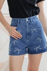 Ayumi Ribbon Denim Short In Dark Wash