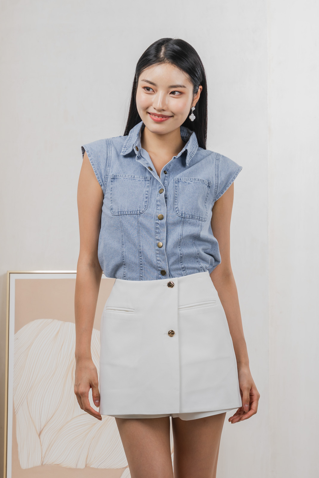 Daisie Denim Cap Sleeves Shirt