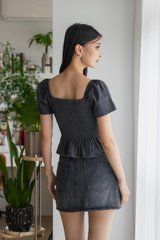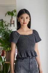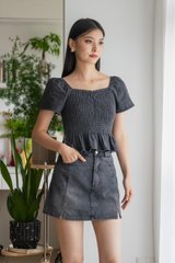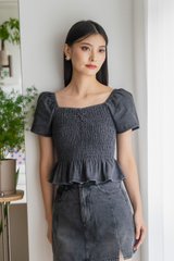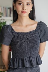 Hydra Smocked Denim Top In Stone Wash