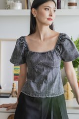 Prosper Denim Panelled Top In Stone