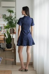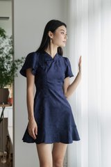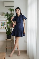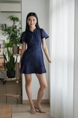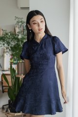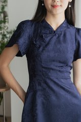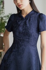 Allure Embossed Cheongsam Dress In Navy