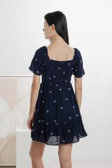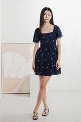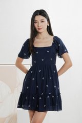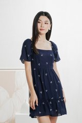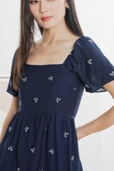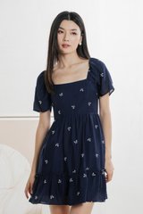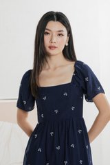 Antonia Ribbon Embroidery Dress In Navy
