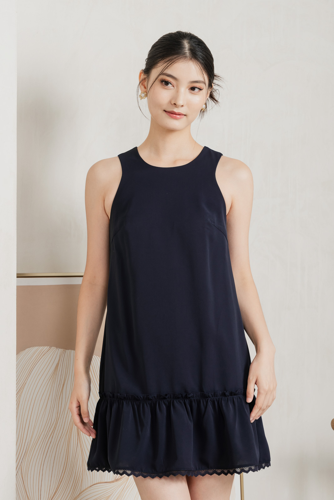- Lace details at hem