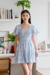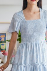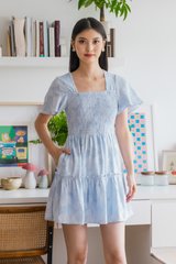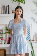 Blush Textured Smocked Dress In Ice Blue