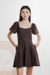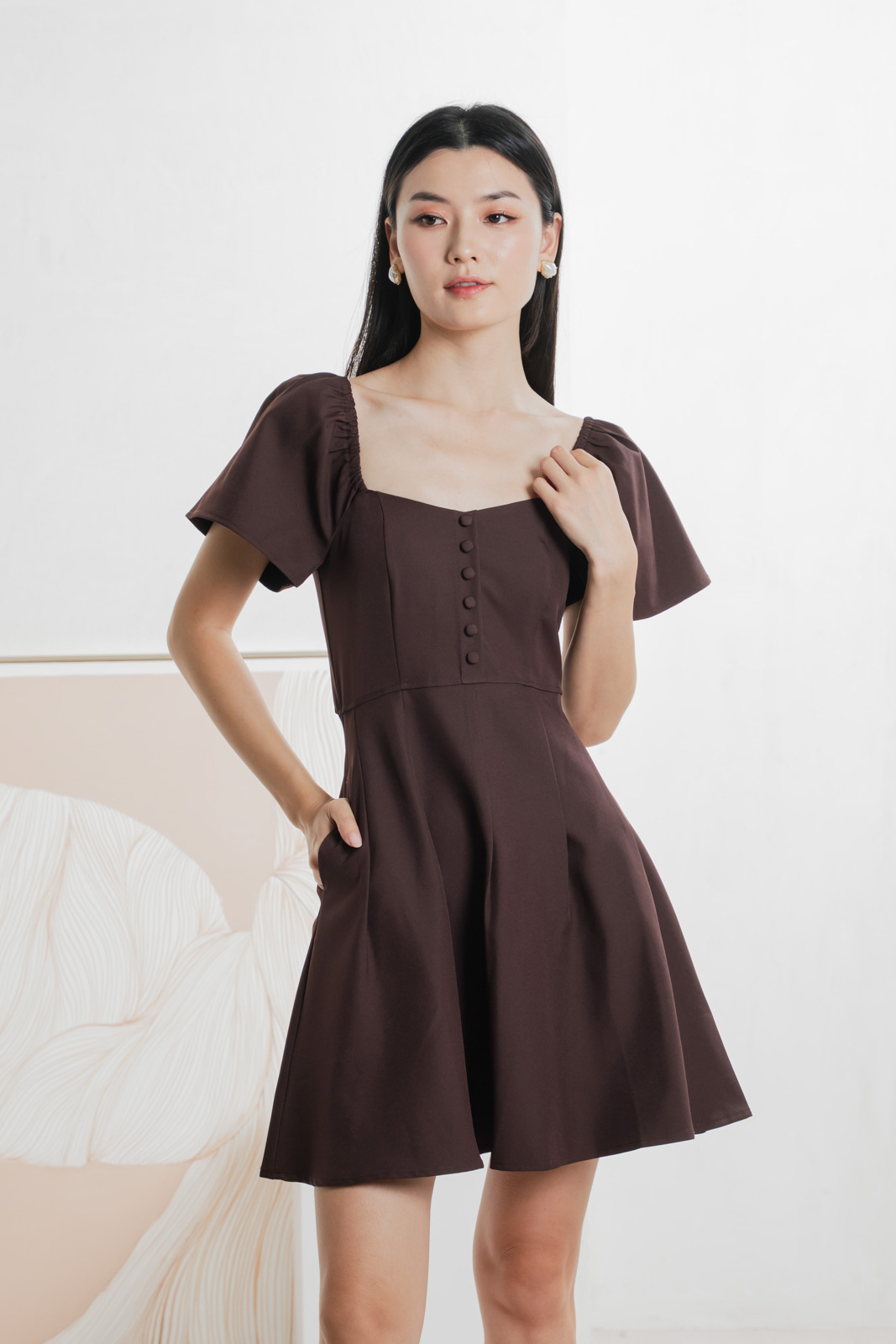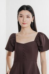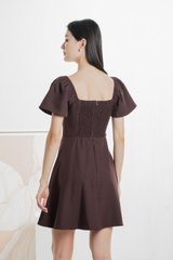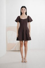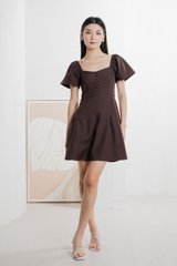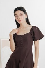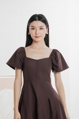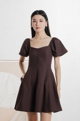 Bondi Buttons Flare Sleeves Dress In Burgundy