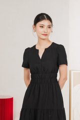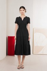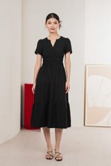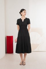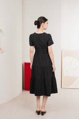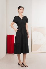 Cordelia V Neck Tiered Midi Dress In Black