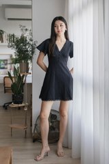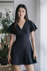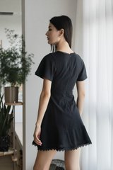Cyrus Crochet Eyelet Empire Dress In Black