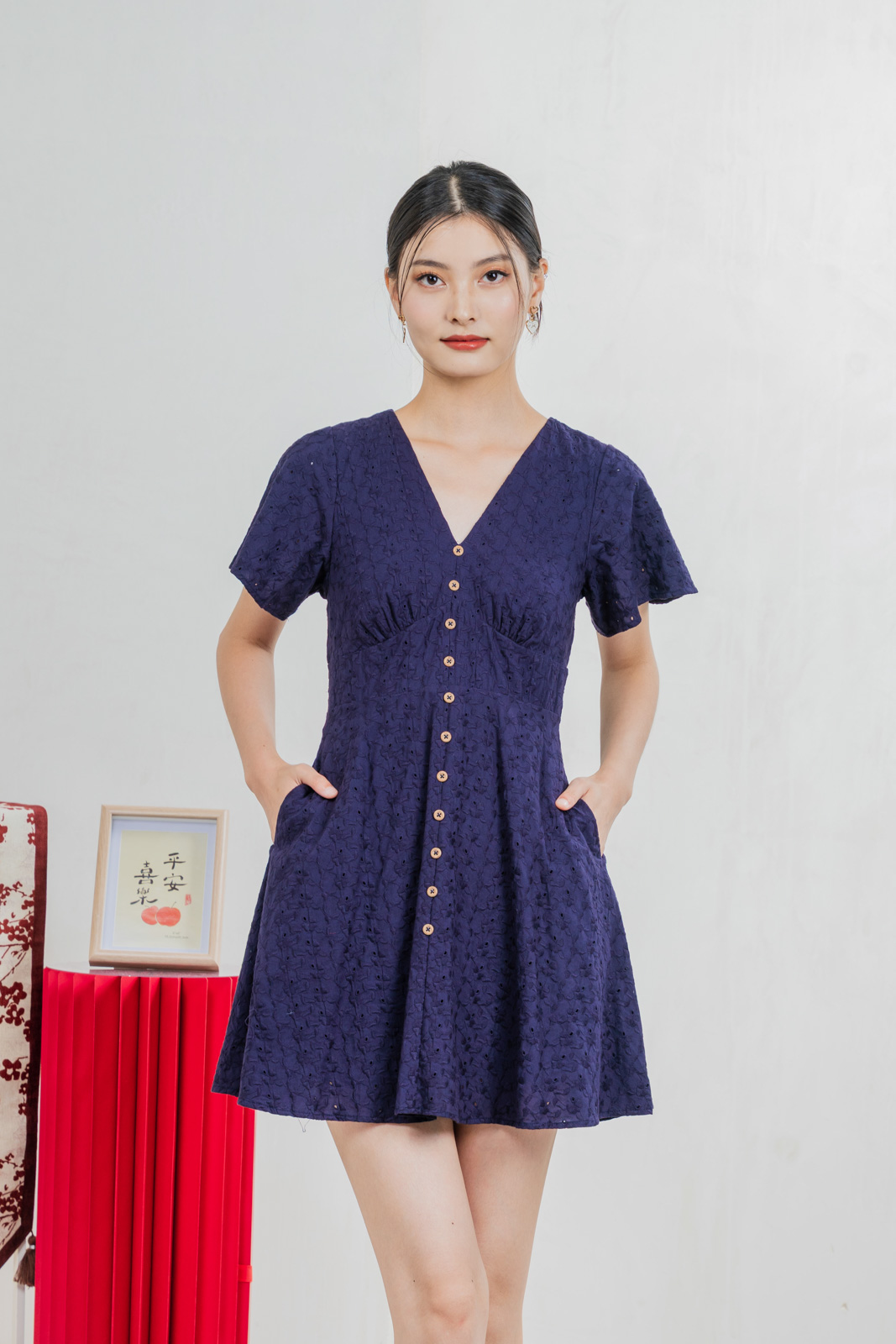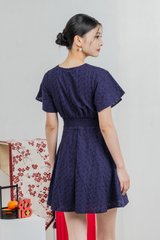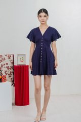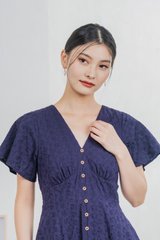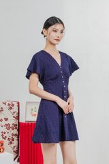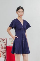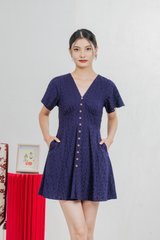 Era Eyelet Buttons Dress In Navy