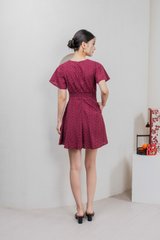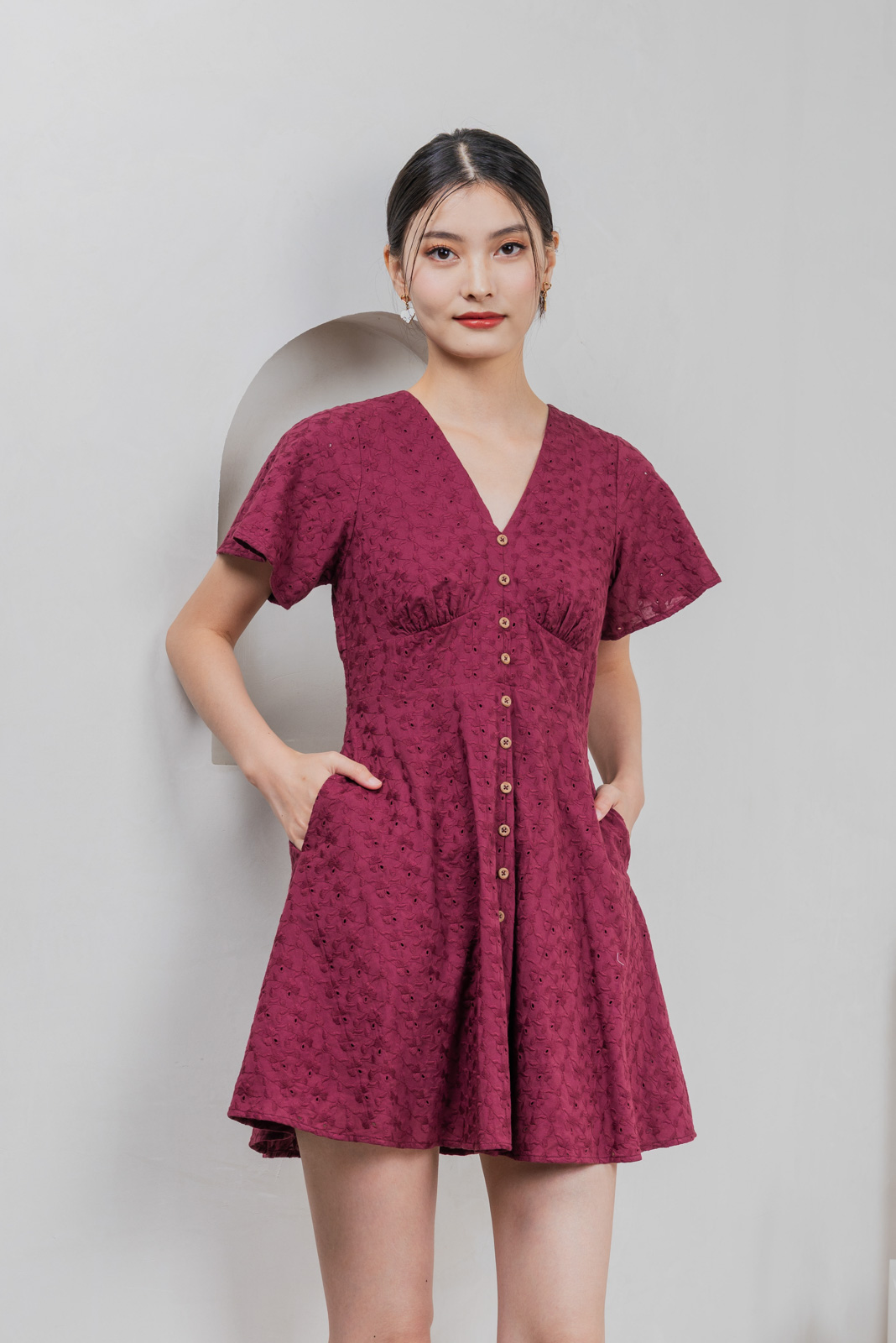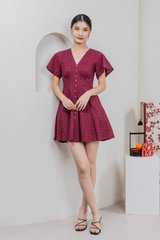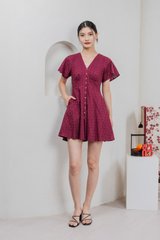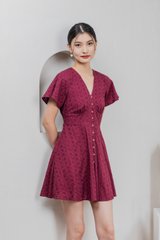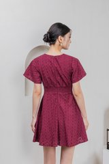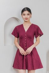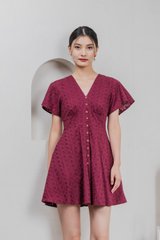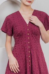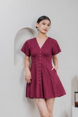 Era Eyelet Buttons Dress In Wine