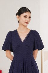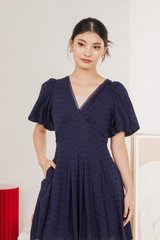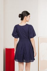 Esme Empire Broderie Dress In Navy (XS)