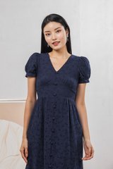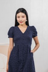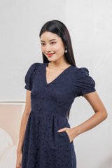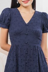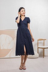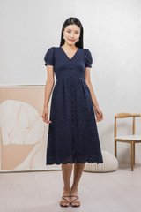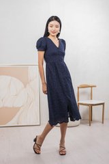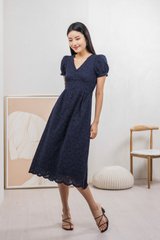 Hansel Eyelet Empire Midi Dress In Navy