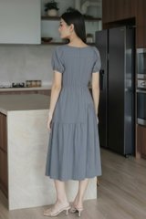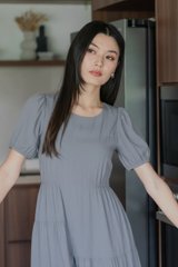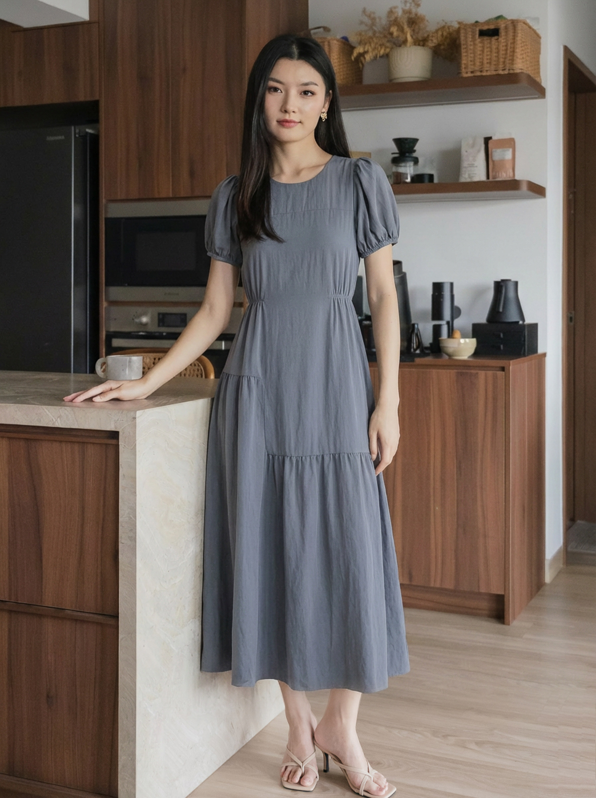 Hayami Puff Sleeves Midi Dress In Gunmetal