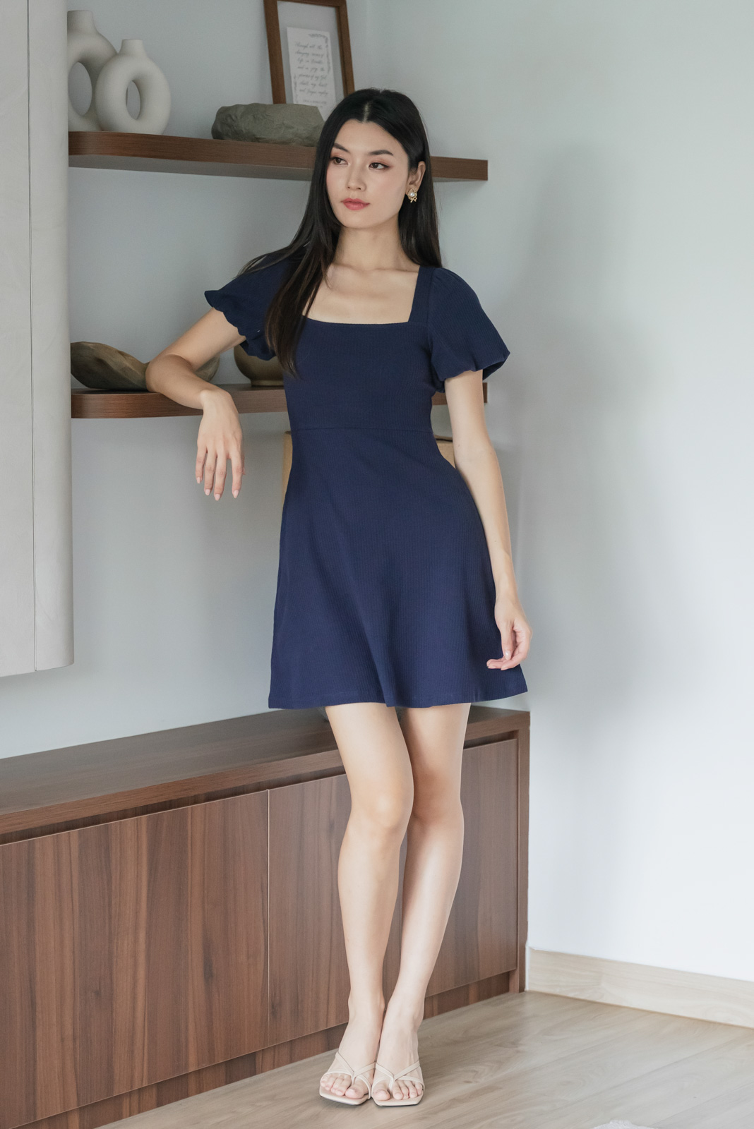 - Flattering square neckline