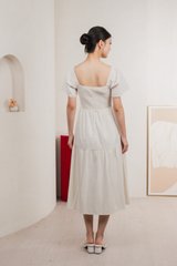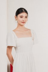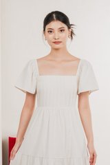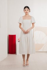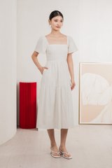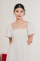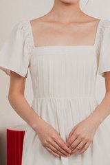 Jacqueline Crochet Pleated Midi Dress In Soft Ivory