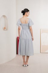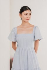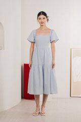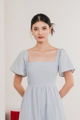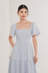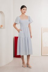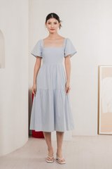 Jacqueline Crochet Pleated Midi Dress In Winter Blue
