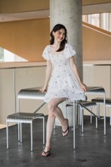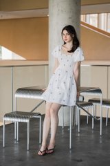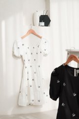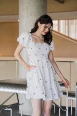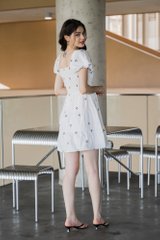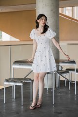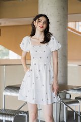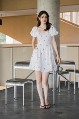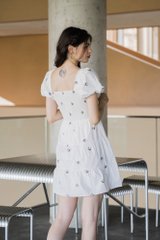 Kaiya Embroidered Ribbon Smocked Dress In White (L)