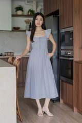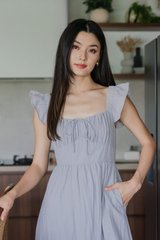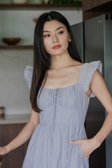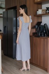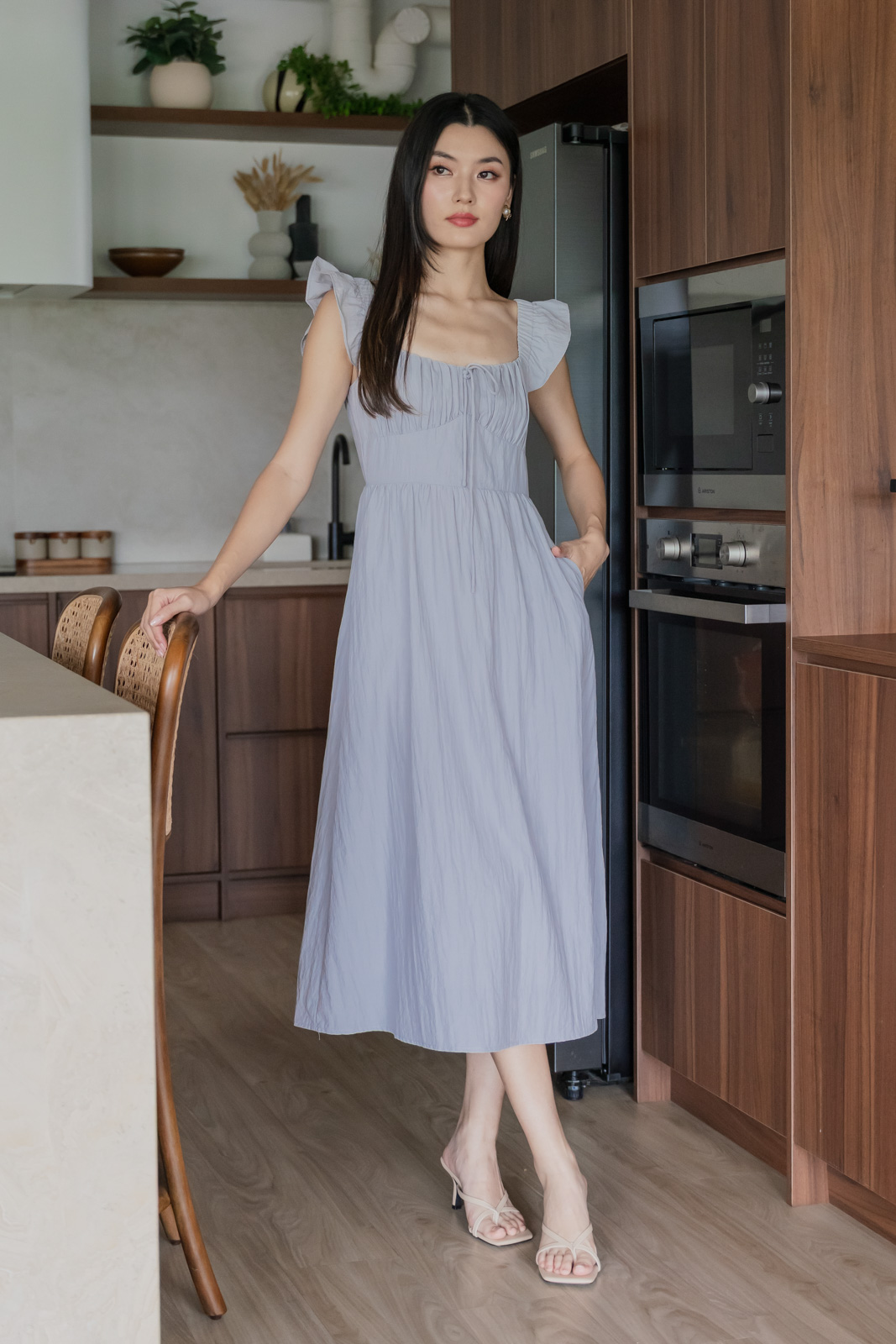 Kura Ruched Ribbon Midi Dress In Light Grey