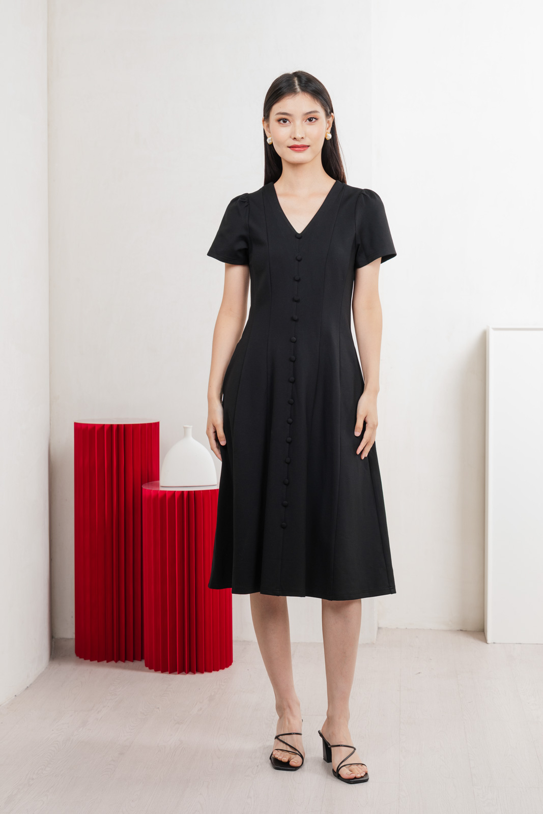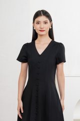Lucien Buttons Midi Dress In Black
