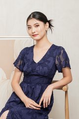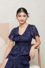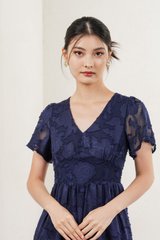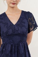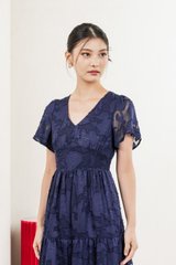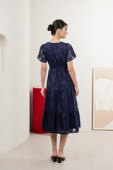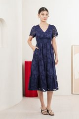 Navillera Textured Tiered Midi Dress In Navy