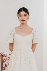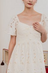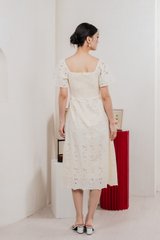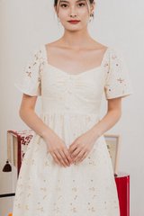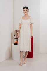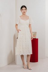 Nico Eyelet Sweetheart Button Midi Dress In Cream