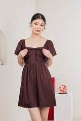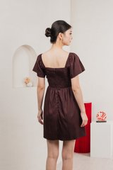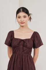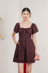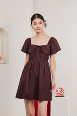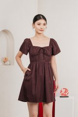 Obsidia Tencel Ruched Ribbon Dress In Burgundy