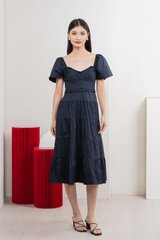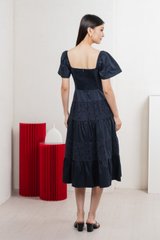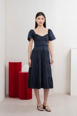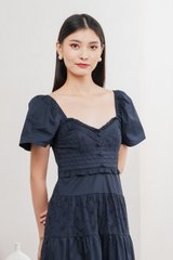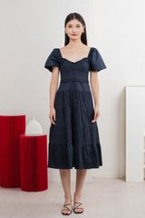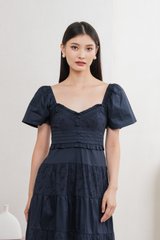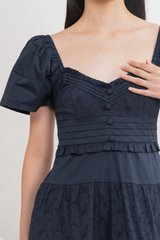 Perla Pintuck Eyelet Maxi Dress In Navy