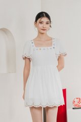 Pure Bliss Cross Stitch Embroidery Dress Romper In White