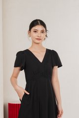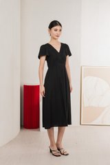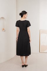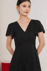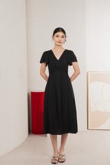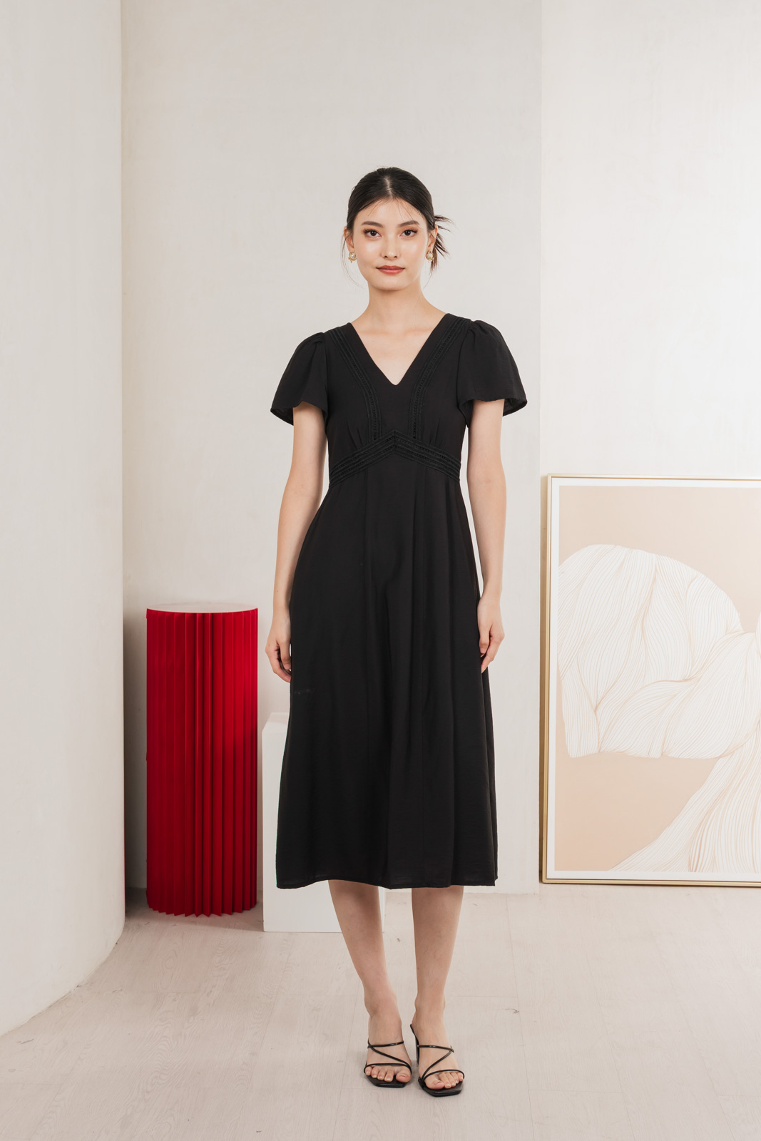 Remi Crochet Flare Sleeve Midi Dress In Black