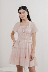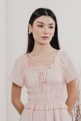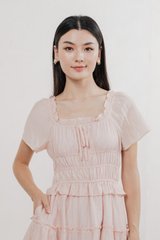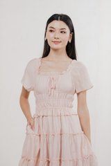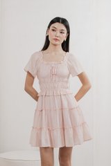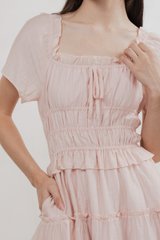 Ripple Textured Ruffles Tiered Dress In Blush Pink