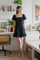 Sapphire Embroidery Dropwaist Dress In Navy