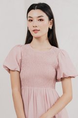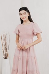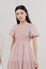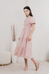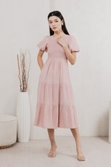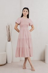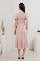 Soiree Smocked Tiered Midi Dress In Dusty Pink