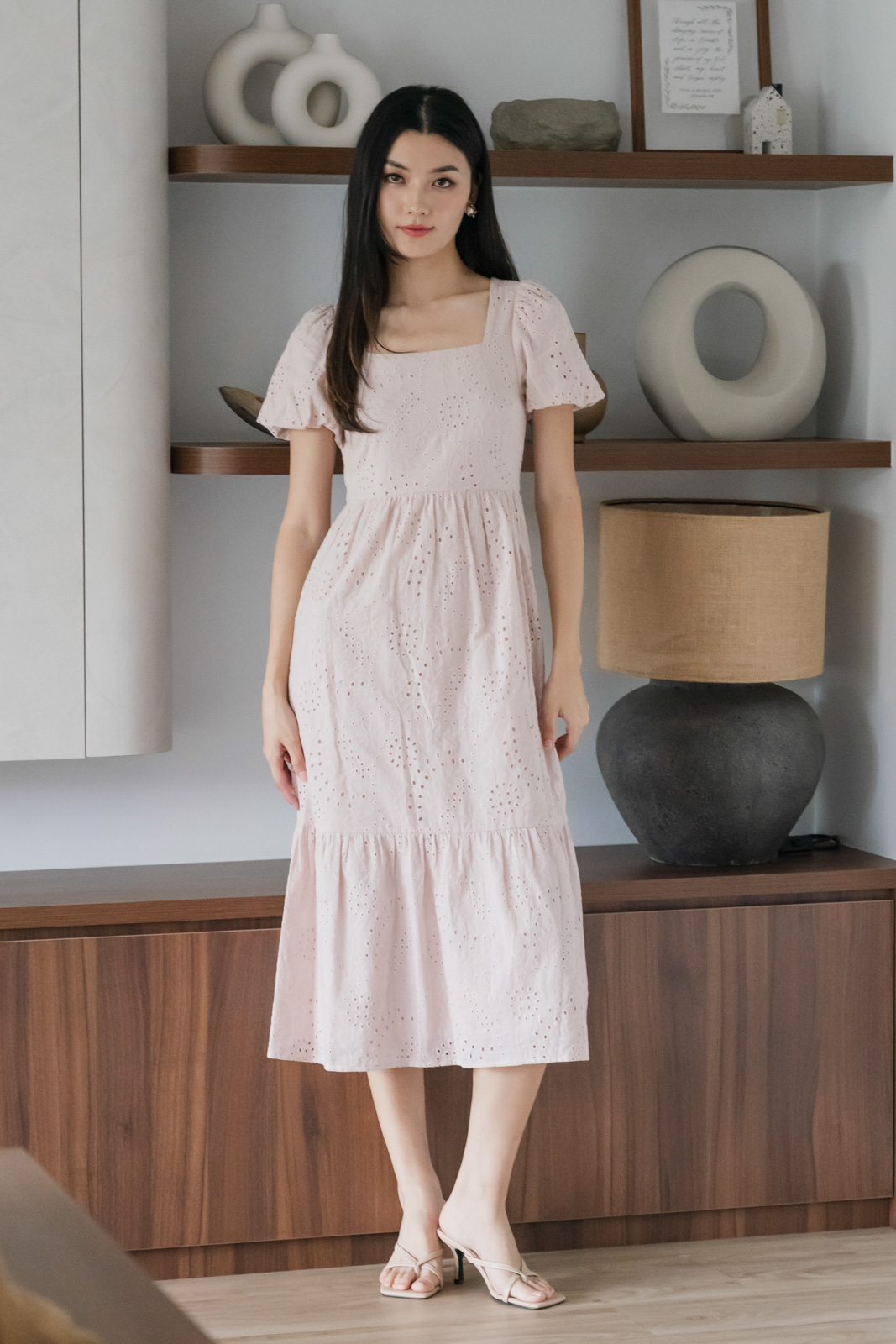 Sookie Eyelet Midi Dress In Sand