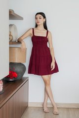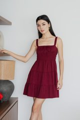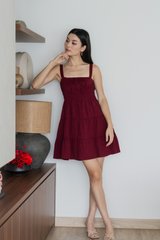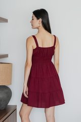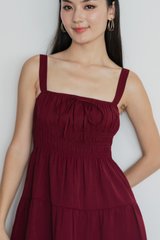 Sunrise Smocked Waist Tiered Dress In Wine