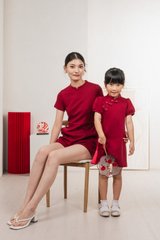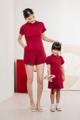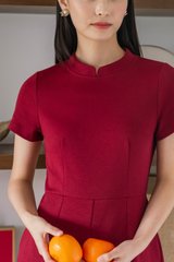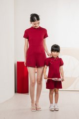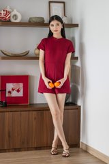 Huan Mandarin Collar Romper In Wine