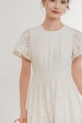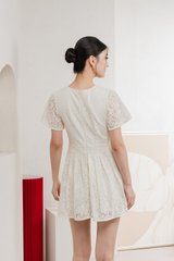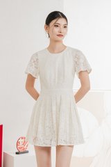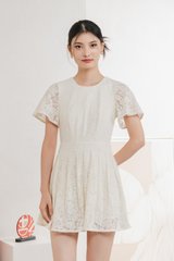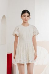 Oriental Pleated Lace Romper In Vanilla