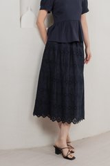 Mayfair Eyelet Midi Skirt In Navy