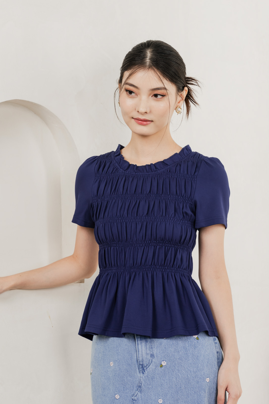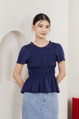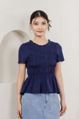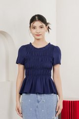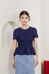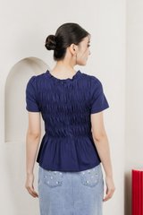 Alya Cotton Smocked Top In Navy