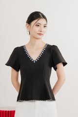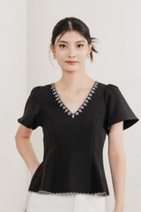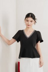Brittany Embroidery Floral Top In Black