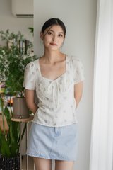 Eulalie Floral Pintuck Ribbon Top