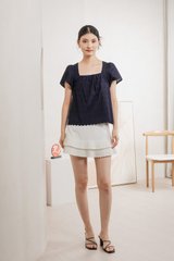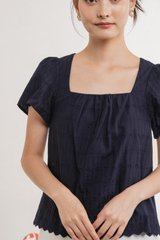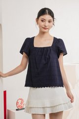 Genova Embroidery Eyelet Gathered Top In Navy