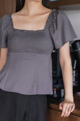 Hadley Cotton Smocked Top In Gunmetal