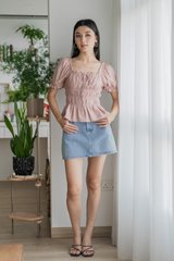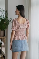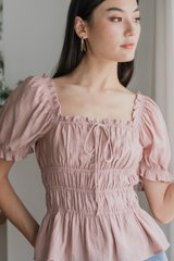 Hope Ruched Ribbon Top In Dusty Pink