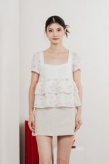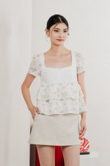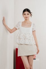 In Bloom Embroidery Buttons Top In Yellow Florals