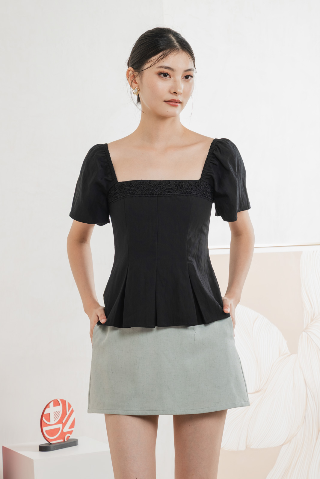 - Pleated details