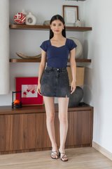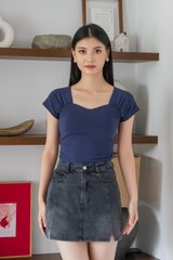 Justine Side Ruched Padded Top In Navy