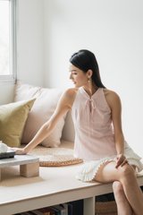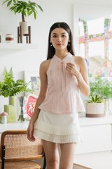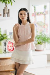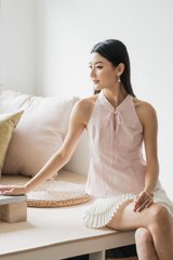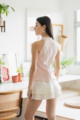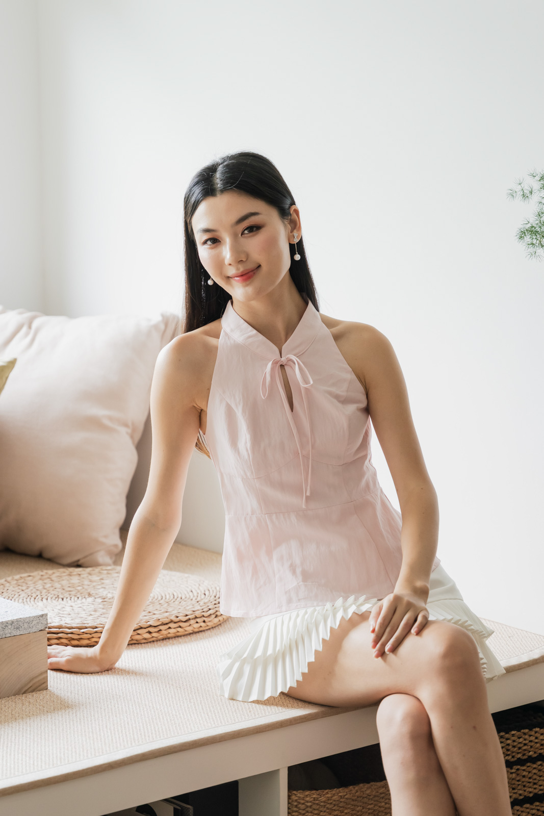 Lunar Mandarin Collar Halter Top In Ice Pink