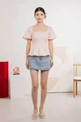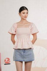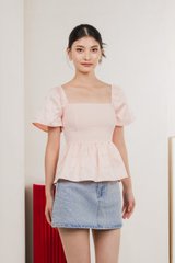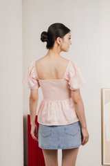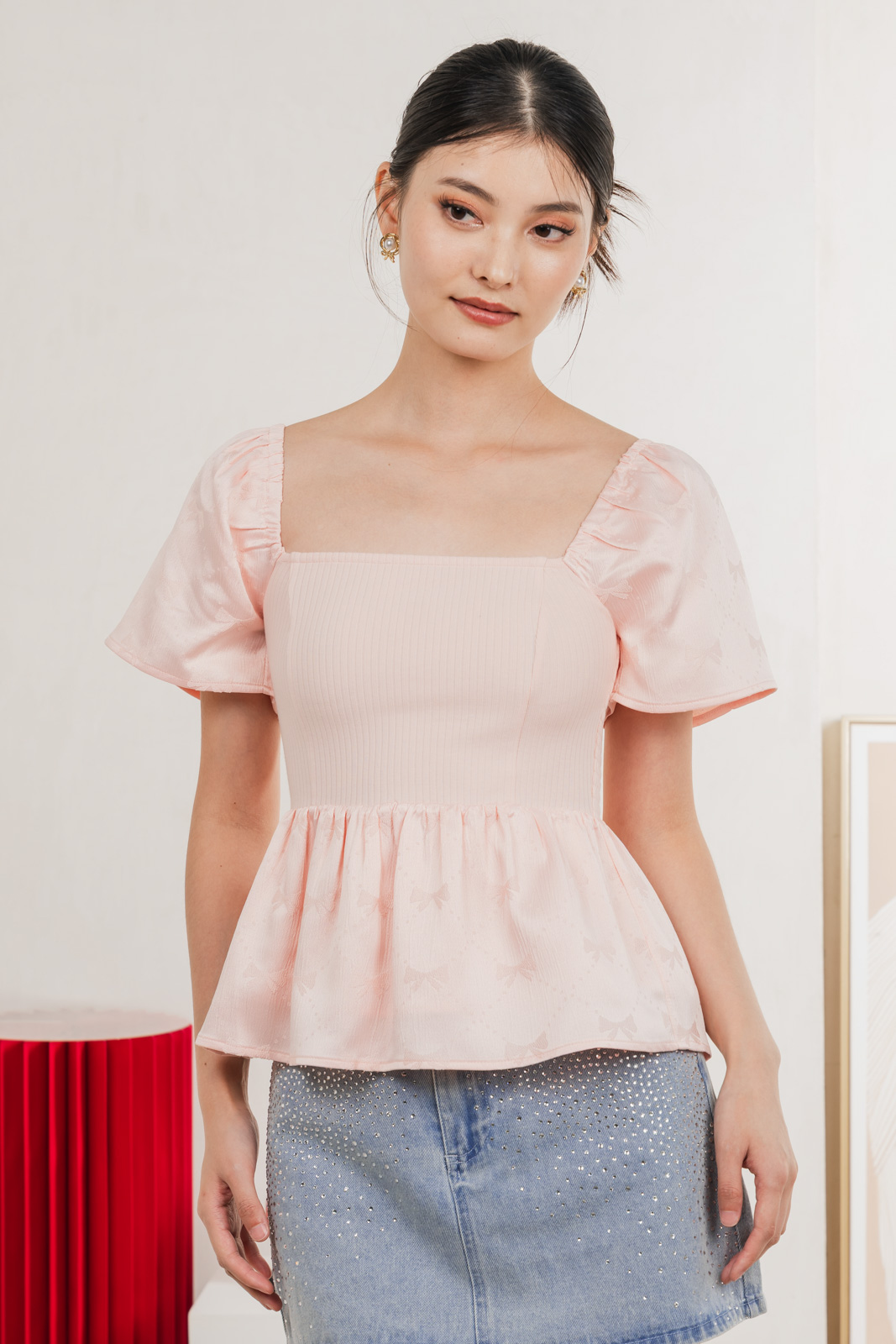 Marcelle Mixed Fabric Ribbon Texture Top In Blush Pink