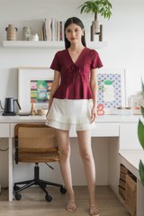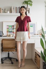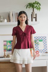 Miko Ribbon Empire Top In Wine
