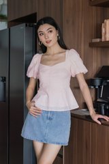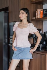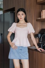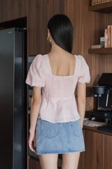 Praise Eyelet Puff Sleeves Top In Light Pink