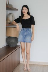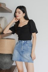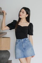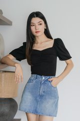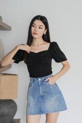 Quintin Ribbed Sweetheart Top In Black